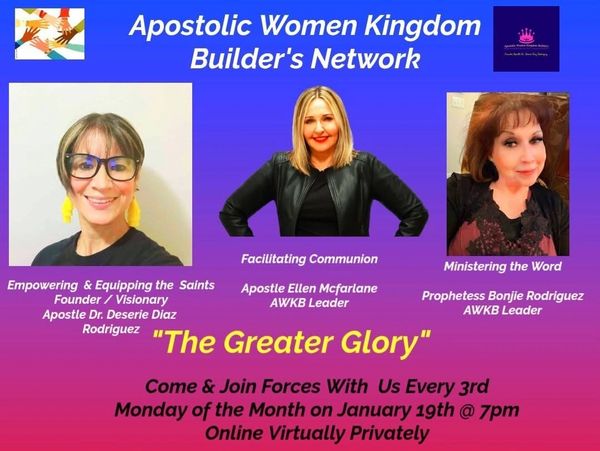 This will be a private zoom call with Apostle Deserie Diaz-Rodriguez & Prophetess Bonjie Sheree Rodriguez & Apostle Ellen McFarlane doing Communion.